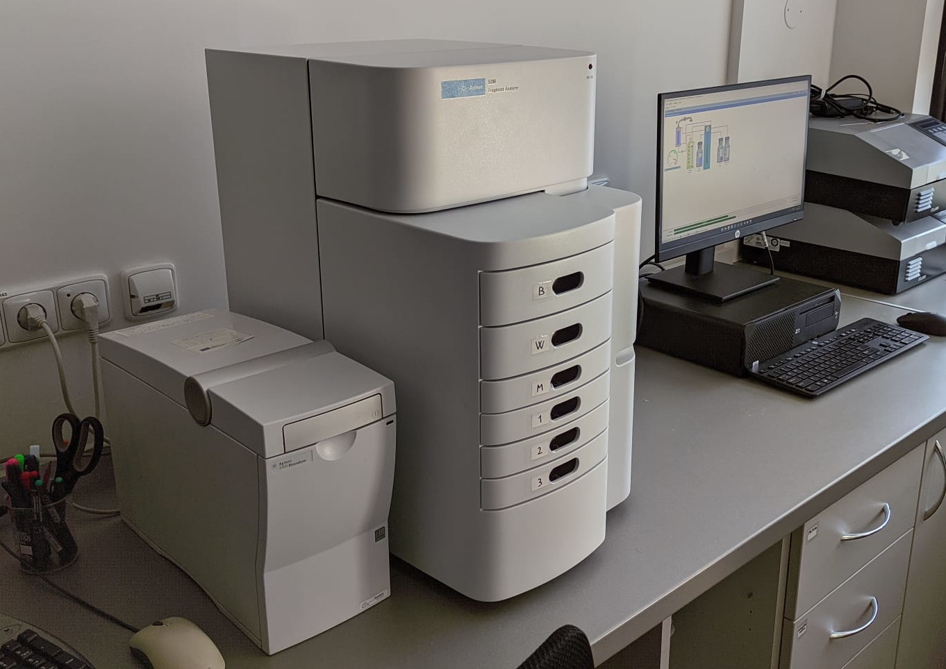 Capillary electrophoresis with fluorescence detection allowing separation of 12 samples in parallel. The system is designed for DNA and RNA quality control.
