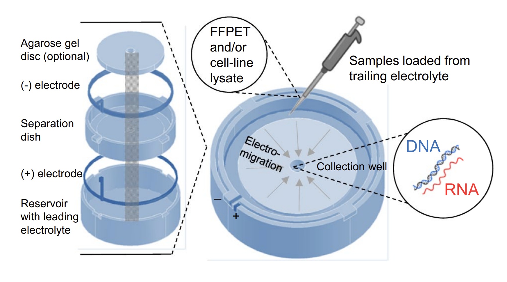- Concentration and purification of large-volume samples based on the principle of isotachophoresis